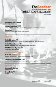 Sandbar 3 Course Menu -Granville Island Dine Around